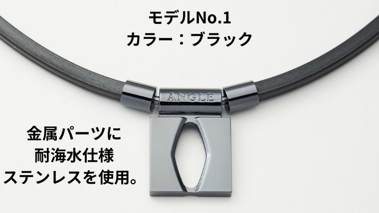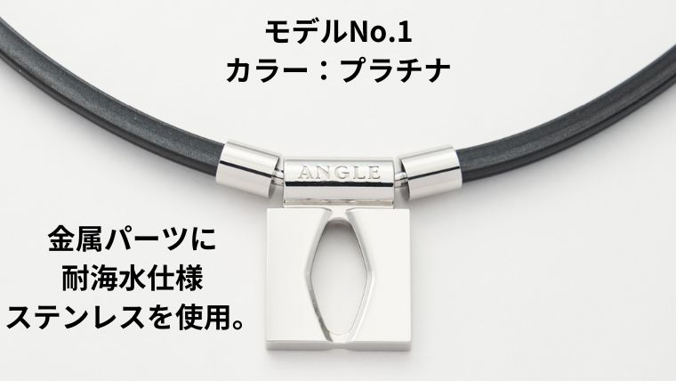 アングル 磁気ネックレスの金属部分は耐海水仕様