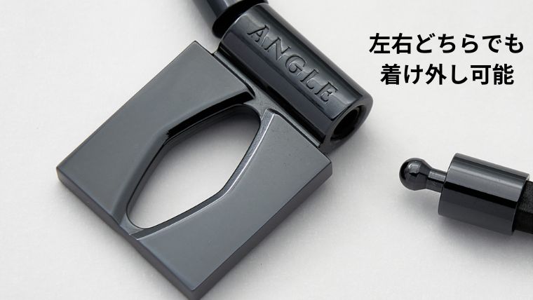 写真(下)のように左右どちらからでも着け外しが可能です。