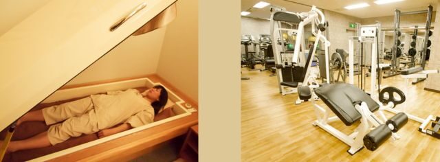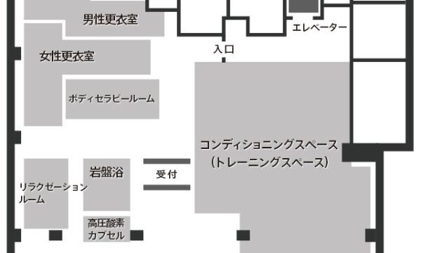 B3フロアには受付や更衣室、またコンディショニングスペースがあります。ボディセラピールームやリラクゼーションルームといった癒しの空間とともに、岩盤浴、酸素カプセルなどを併設しています。