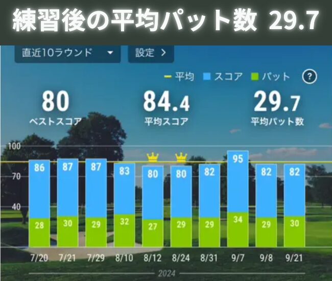そして、パーフェクトストロークで練習し始めた結果、安定的に1ラウンドのパット数が5打も縮まっています!